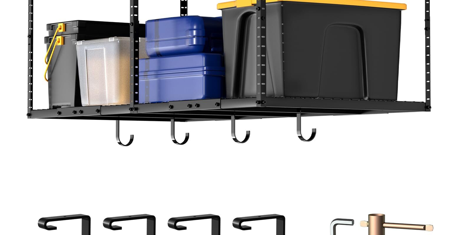 - Versatility: Ideal for storing bins, tools, sports equipment, and more